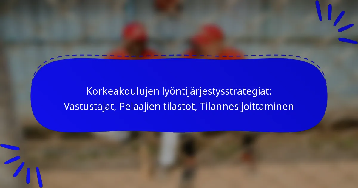 Korkeakoulun lyöntijärjestyksen rakentaminen sisältää pelaajien strategisen sijoittamisen heidän vahvuuksiensa, heikkouksiensa ja vastustavan syöttäjän ominaisuuksien perusteella. Tehokkaat lyöntijärjestykset parantavat juoksu- ja pisteytysmahdollisuuksia ja maksimoivat joukkueen suorituksen pelin aikana.