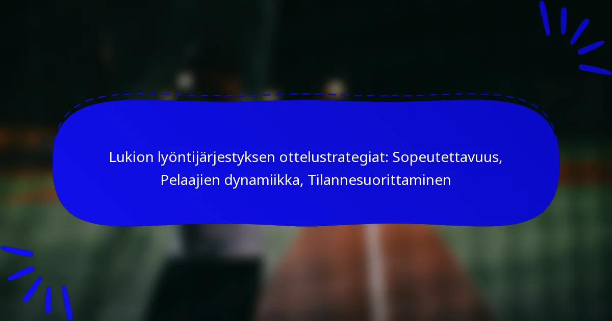 Lukion lyöntijärjestyksen strategiat keskittyvät pelaajien kohtaamisten optimointiin, pelaajien vahvuuksien ymmärtämiseen ja pelitilanteisiin mukautumiseen. Tehokkaat kokoonpanot voivat parantaa hyökkäyspotentiaalia ja parantaa koko joukkueen suorituskykyä.